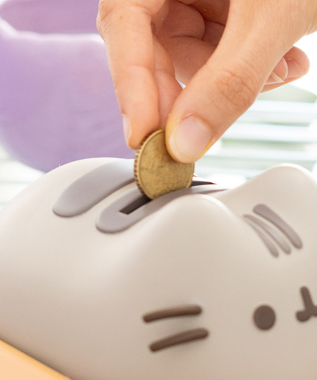 Keep your money safe in the Pusheen Piggy Bank! The vinyl coin holder has a slot at the top to deposit coins, and a screw cap at the bottom. Simply twist the cap to remove your coins & bills.