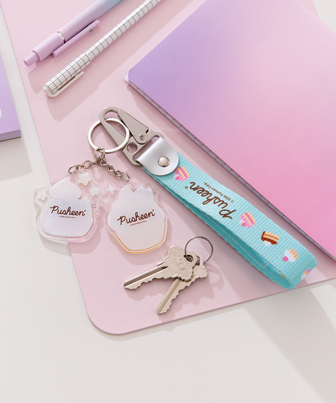 Keep Pusheen and your keys close at hand! The Pusheen Cupcake Keystrap has an embroidered patch, and the woven strap measures 10" long and fits comfortably around the wrist. With two sweet acrylic charms, this keystrap is the cutest accessory!