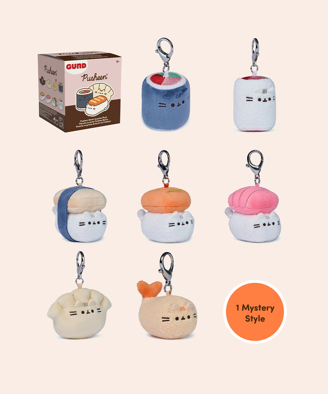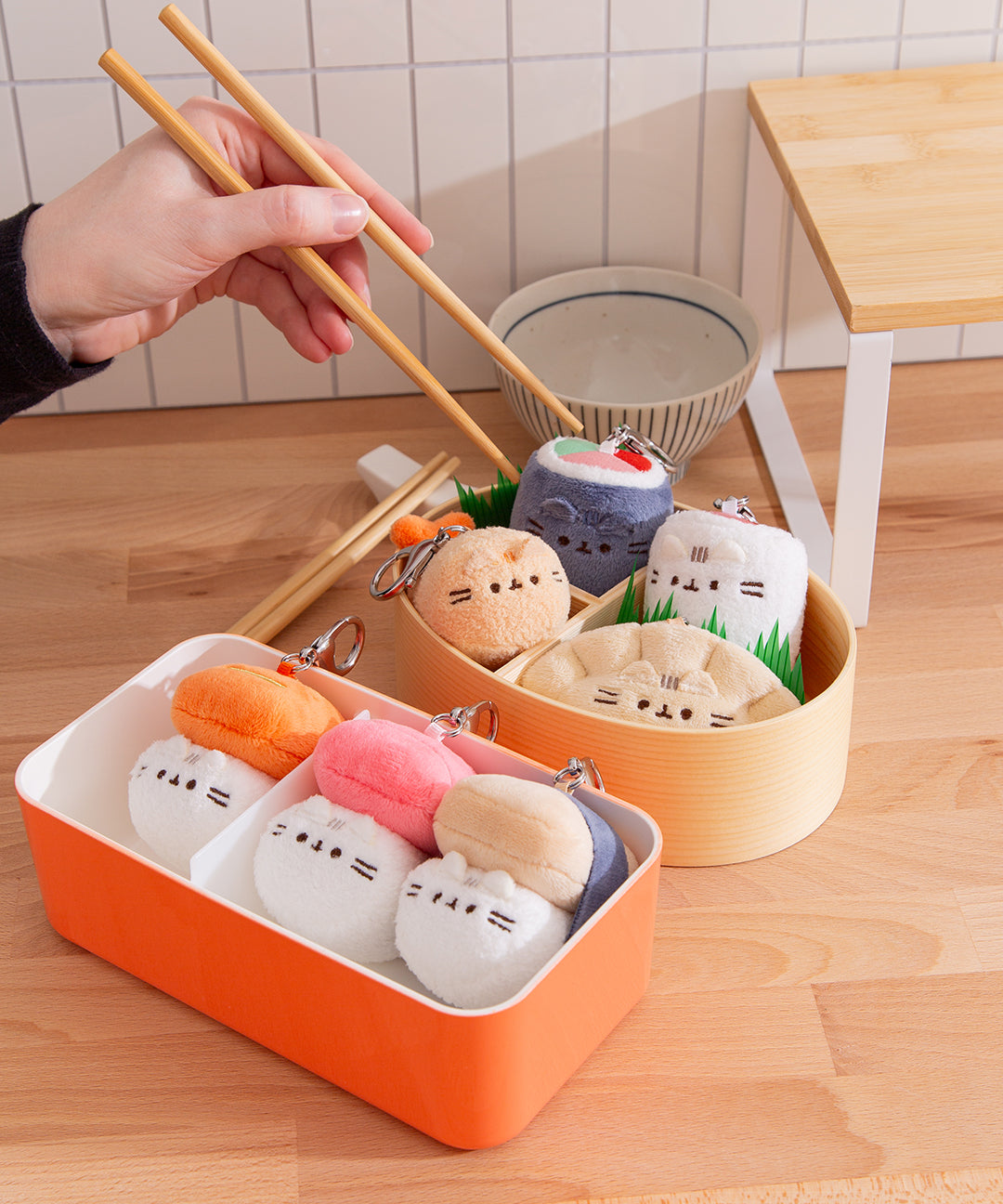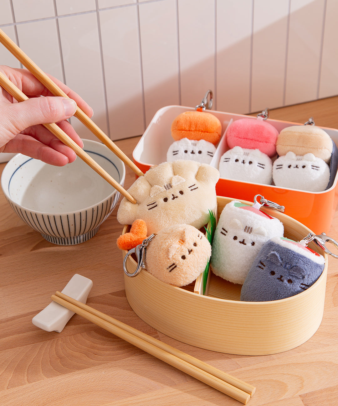 Treat yourself to a delicious, sophisticated Asian snack with Pusheen! The Pusheen Bento Box Surprise Plush features 8 irresistibly cute, soft designs, each showing Pusheen as an adorable bento box classic food for when you just need a little snack. From Asian classic cuisines like sushi rolls and sashimi to street food favorites like tempura shrimp, Pusheen is ready to indulge! Unbox and collect all eight to complete your bento box collection, including a rare mystery style. Each plush includes a metal keychain for secure attachment to bags and backpacks.